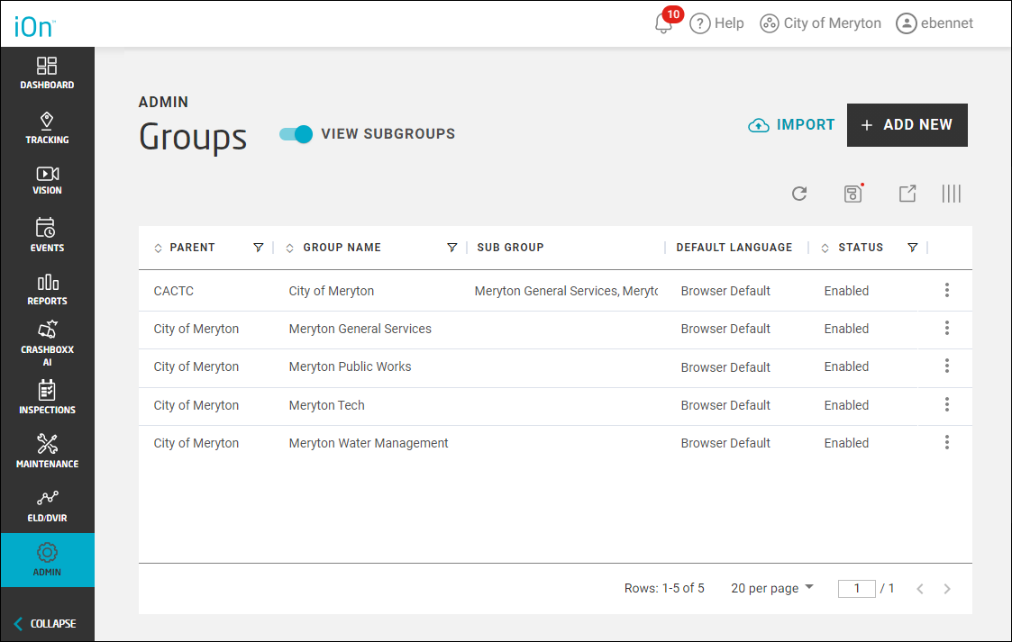 Note: The group needs to have already been created, as the SFTP server configuration can be performed only in the Edit Group dialog box, NOT in the Add Group dialog box. - Scroll down to the group or filter the Group Name column to find it. (See Sorting and Filtering Column Data if needed.)