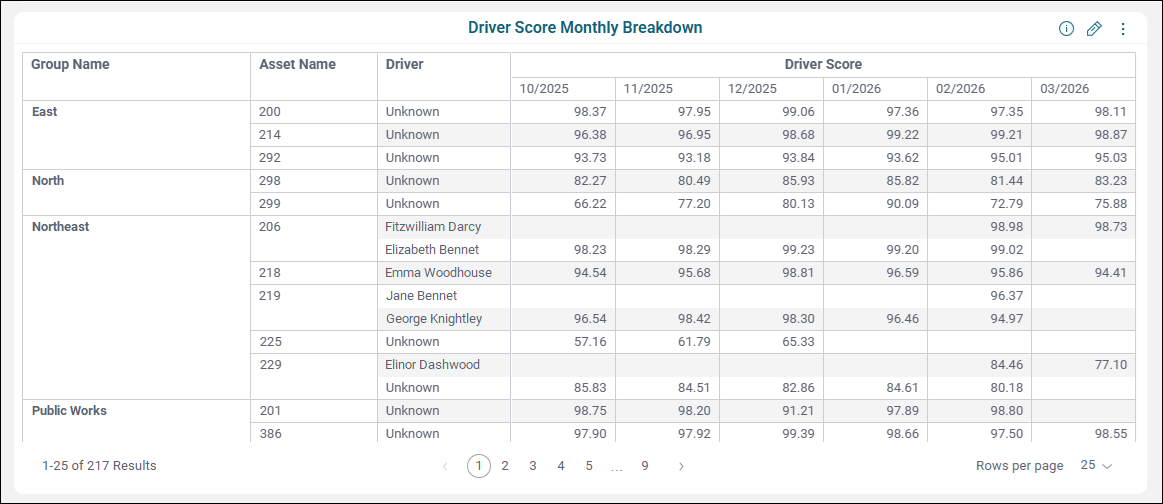 The Driver Score Monthly Breakdown Widget