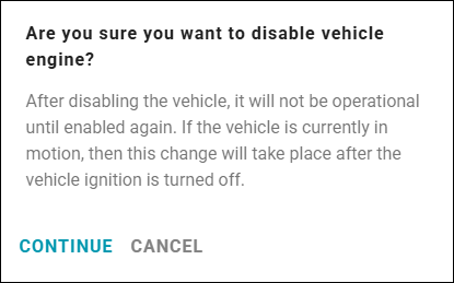If your organization has set up the correct configuration for hardware and scripts with your customer success manager (CSM), you will be able to disable vehicle starters remotely and stop assets from being driven. To clarify, disable in this context doesn’t mean to turn off their tracking in iOn; instead, this means that the vehicle will become inoperable, preventing its use. If a vehicle is disabled while it is in motion, it will stop functioning after the ignition is turned off.